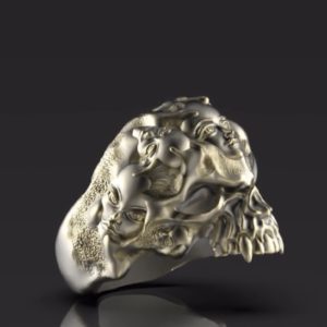 スカルの表面にさまざまな表情の顔がパラサイト。