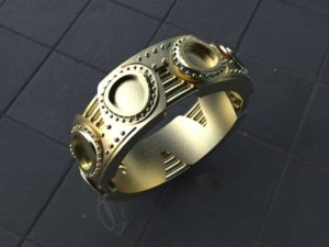 【実例1】お客様のデザイン画→ ①3Dモデリング→ ④ワックス切削加工