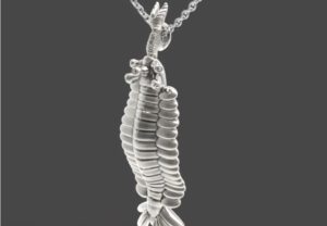カンブリア紀の生物の中で知名度が高い「オパビニア」のペンダントトップです。